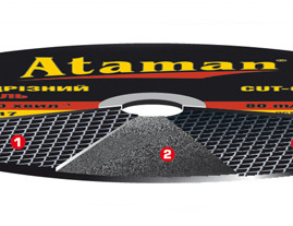 Абразивні круги «Ataman» виготовлені з високоміцного електрокорунду - сучасного матеріалу, який характеризується високою твердістю і надійністю. Коло складається на 95% з оксиду алюмінію найвищої якості і на 5% з цирконію, що дозволяє робити різання металу на великих оборотах.